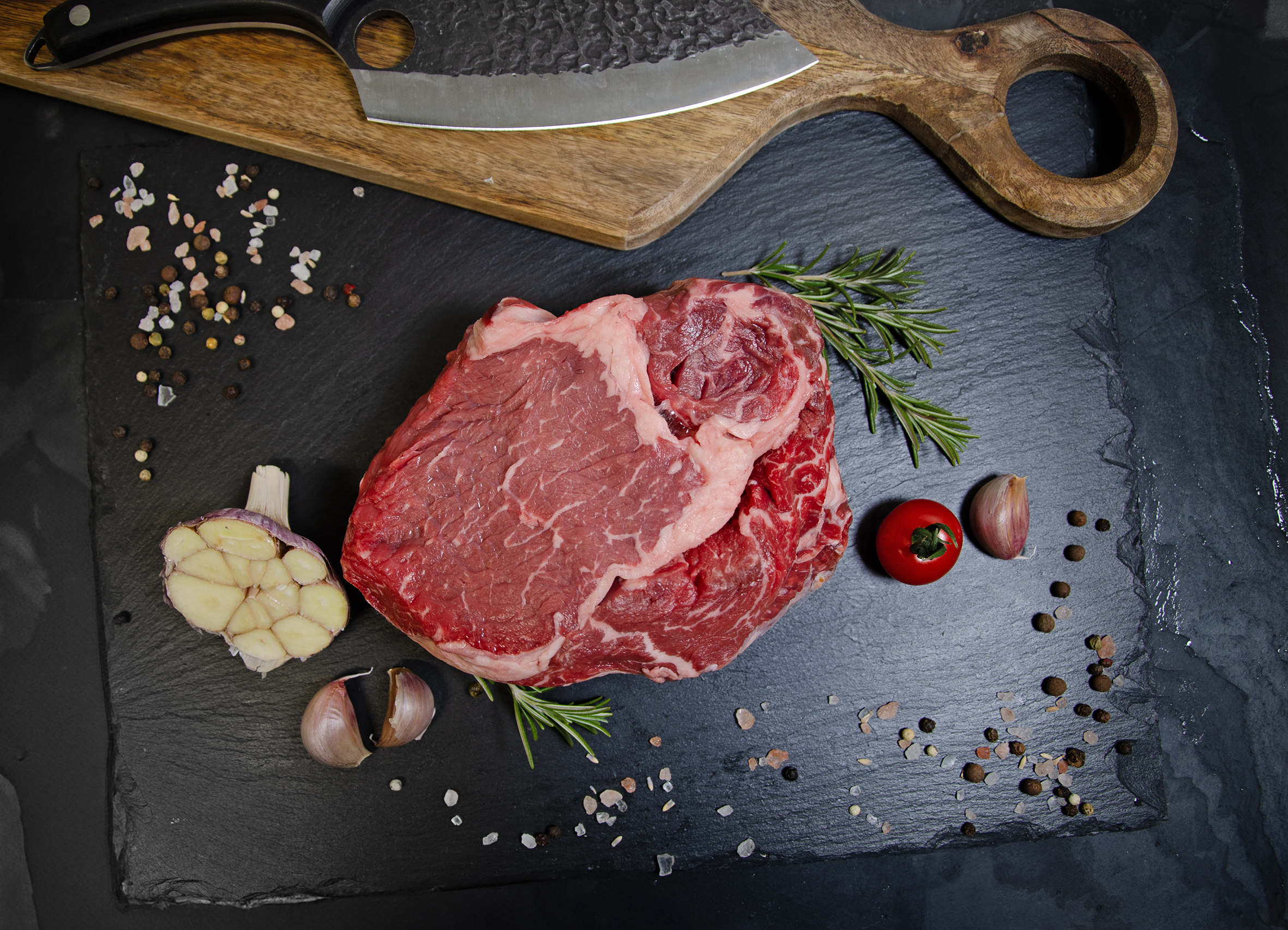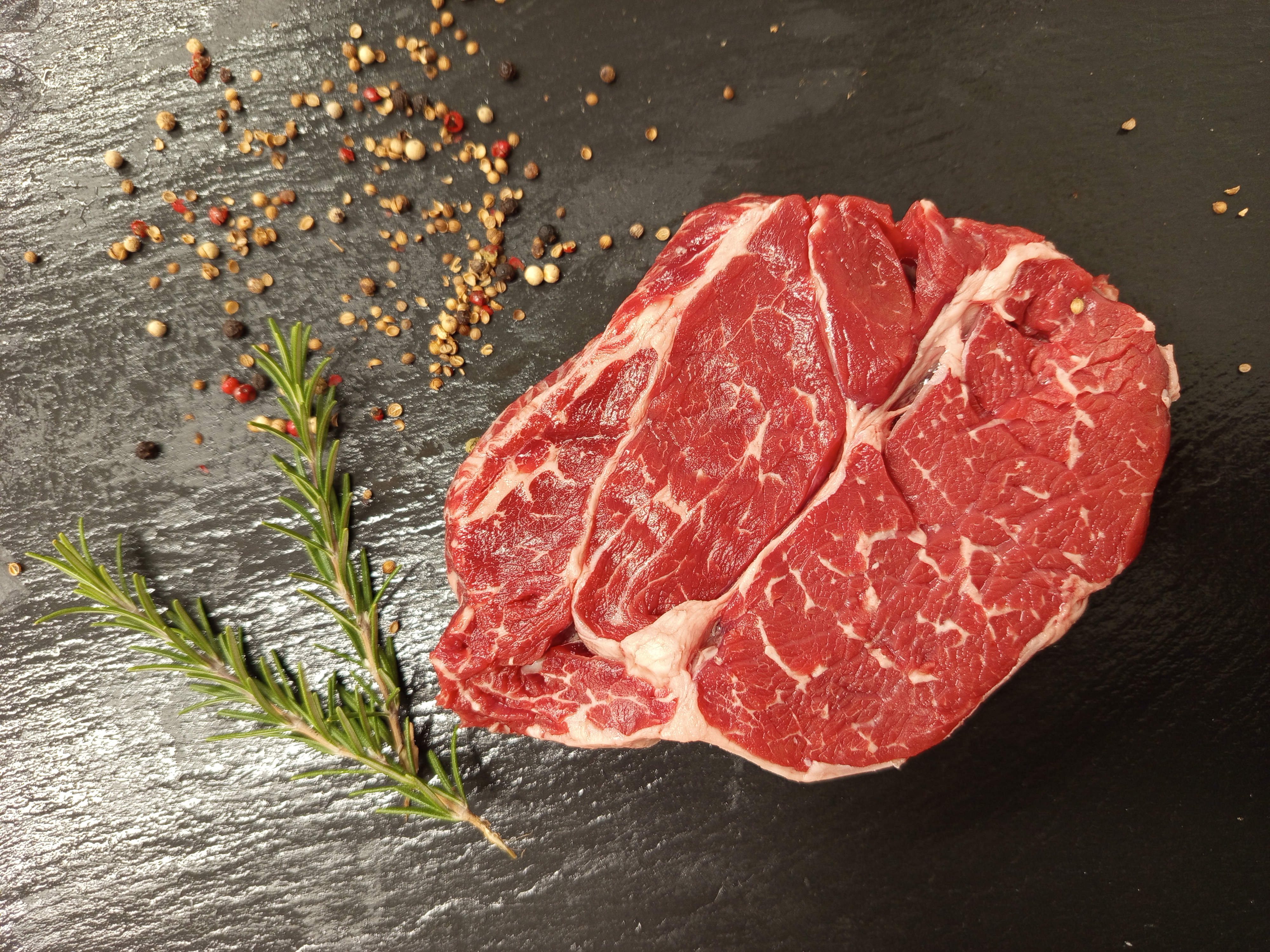Vysoká roštená - Rib Eye steak, nebo Entercote je křehké maso ze zadní hovězí čtvrti. Vysoká roštená je maso dobře prorostlé, jemného vlákna s tukovým žilkováním, které dává masu šťavnatost. Ideální využití na steaky, pečení vcelku, nebo grilování. Gurmáni maso označují za nejlepši steaky.
